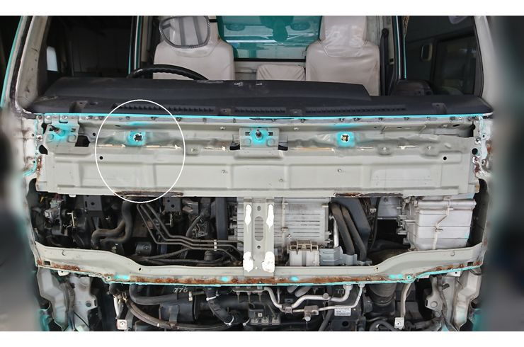 この状態になるとフロントパネル交換時に溶接での作業が可能になります。
