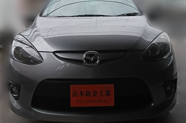 2019/03/05湯河原町で車修理を行っている山本鈑金工業です。 本日はT様からお預かりのマツダ デミオのフロントバンパー修理をご紹介します。 車検でお預かりした際に、フロントバンパーのキズ修理を同時依頼されました。 -