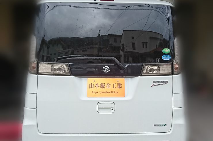 2019/02/04神奈川県湯河原町で車修理を行っている山本鈑金工業です。 本日は、スズキエブリィの修理をご紹介します。湯河原町にお住まいのK様からのご依頼です。走行中、強風により看板が突然飛んできたそうです。 自費修理になるので、なるべく安価になるようご相談されました。弊社は部品の状態が良い中古パーツ等を探しての修理をご提案しました。 お客様からは、中古パーツ修理のご依頼受けました。 -